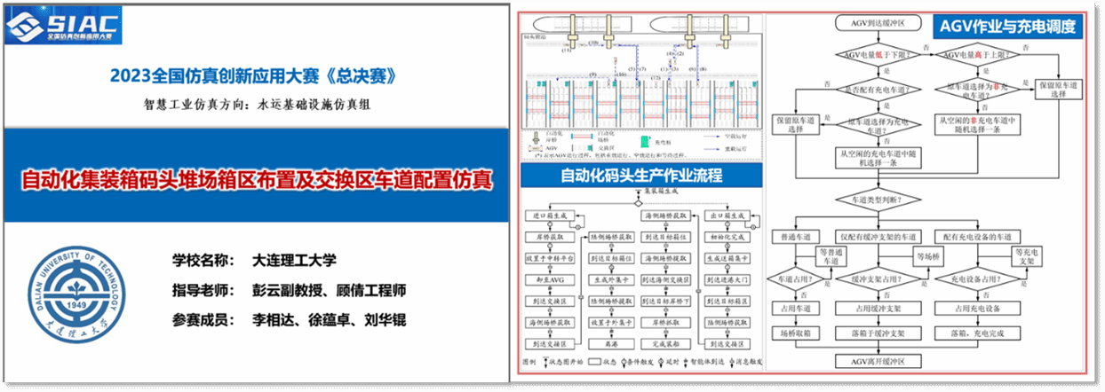 大连理工大学港航与海洋工程系教师组织本、硕、博学生联合组队参加赛事,再获佳绩。由彭云老师和顾倩老师指导,博士研究生李相达、徐蕴卓、刘华锟的参赛作品《自动化集装箱码头堆场箱区布置及交换区车道配置仿真》斩获全国总决赛一等奖(最高奖项),研究生刘苏日、刘可可、于鹏溪、闫薪茹、本科生朱志博的参赛作品《面上海上风电桩巡检的多无人艇路径协同规划算法仿真研究》,研究生夏天睿、本科生张旭莹、景宇豪、王宇、王闻涛的参赛作品《某海港LNG泊位扩建对船进出港通航影响的仿真研究》分获全国总决赛二、三等奖?/span>